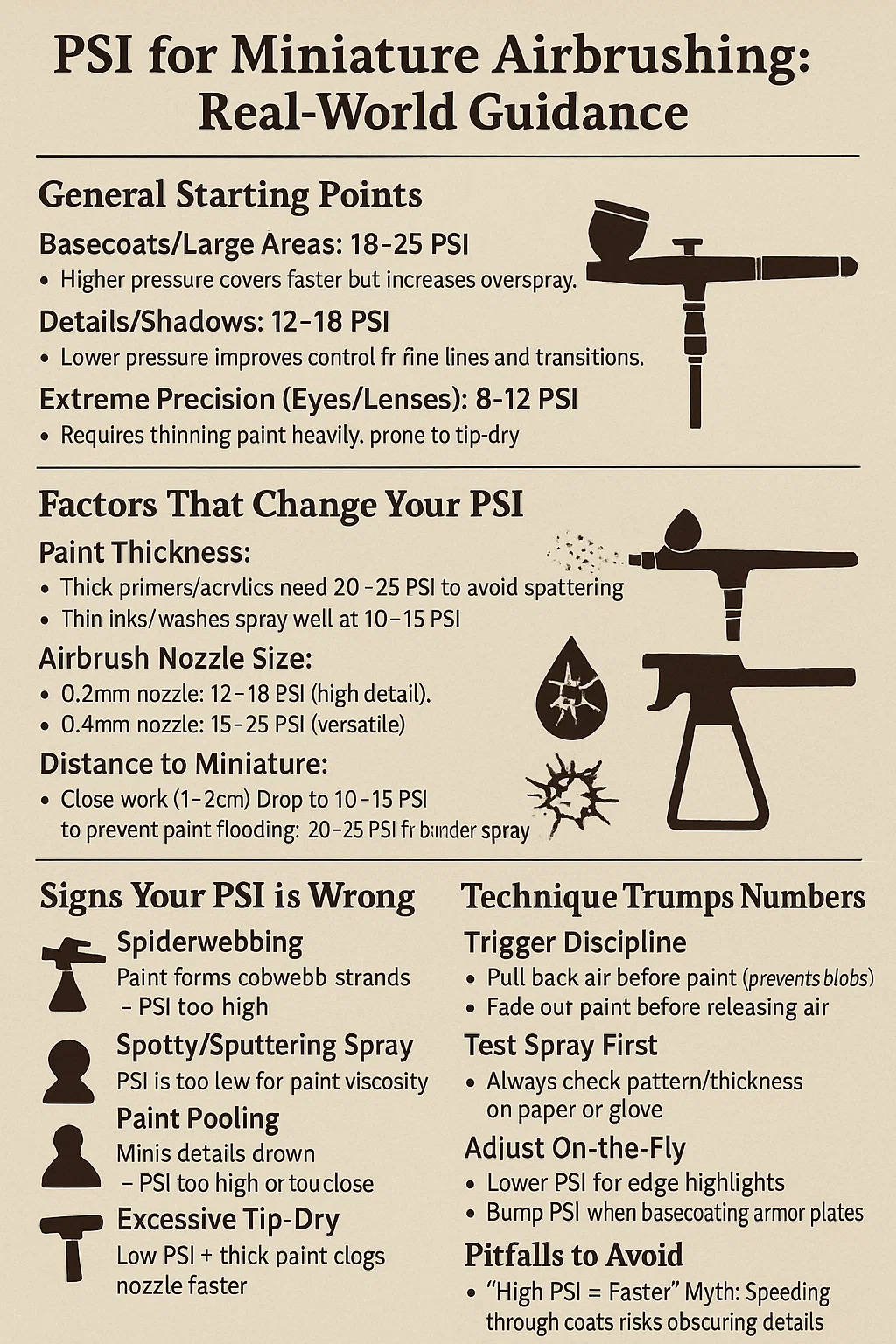 Las tintas/lavados finos se rocían bien a 10-15 PSI.
